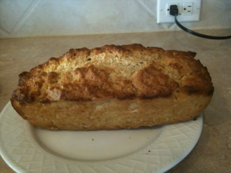 I'm going to try my hand at beer bread tonight to serve with the chili (notice a theme in my cooking today?). I found this recipe this afternoon and it looks simple enough to throw together, so I'll give it a shot and see how it turns out. *Added after cooking and eating said beer bread: This recipe is a winner, although with the amount of butter it calls for I can't call it health food by any stretch of the imagination. Next time I'll cut the butter down.