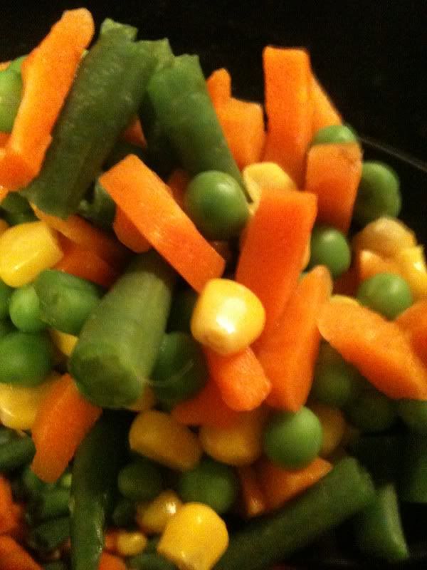 Our side dish for tonight was some organic frozen mixed vegetables from Costco served with a little butter, salt, and pepper. Nothing fancy, but simple can be good.